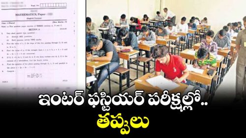 Hyderabad:ఇంటర్ పరీక్షల్లో తప్పులు:తెలంగాణలో మార్చి 5వ తేదీ నుంచి ఇంటర్ పరీక్షలు జరుగుతున్నాయి. ప్రశాంతంగానే పరీక్షలు జరుగుతున్నాయి. ఒక నిమిషం నిబంధన ఎత్తివేయంతో విద్యార్థుల్లో టెన్షన్ పోయింది.అయితే ఈ సారి పరీక్షల్లో వరుసగా తప్పులు వస్తున్నాయి. దీంతో విద్యార్థులు ఆందోళన చెందుతున్నారు.తెలంగాణ ఇంటర్మీడియట్ పరీక్షల్లో ప్రశ్నపత్రాల్లో అనేక తప్పులు గుర్తించబడ్డాయి, దీనివల్ల విద్యార్థులు, తల్లిదండ్రులు ఆందోళన వ్యక్తం చేస్తున్నారు.